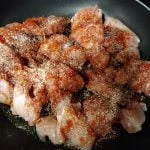 • Começa por cortar em cubos os peitos de frangos. Coloca na frigideira.