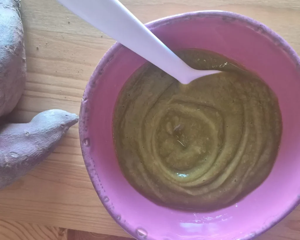 Sopa de batata-doce, brócolos e salmão (> 6 meses)