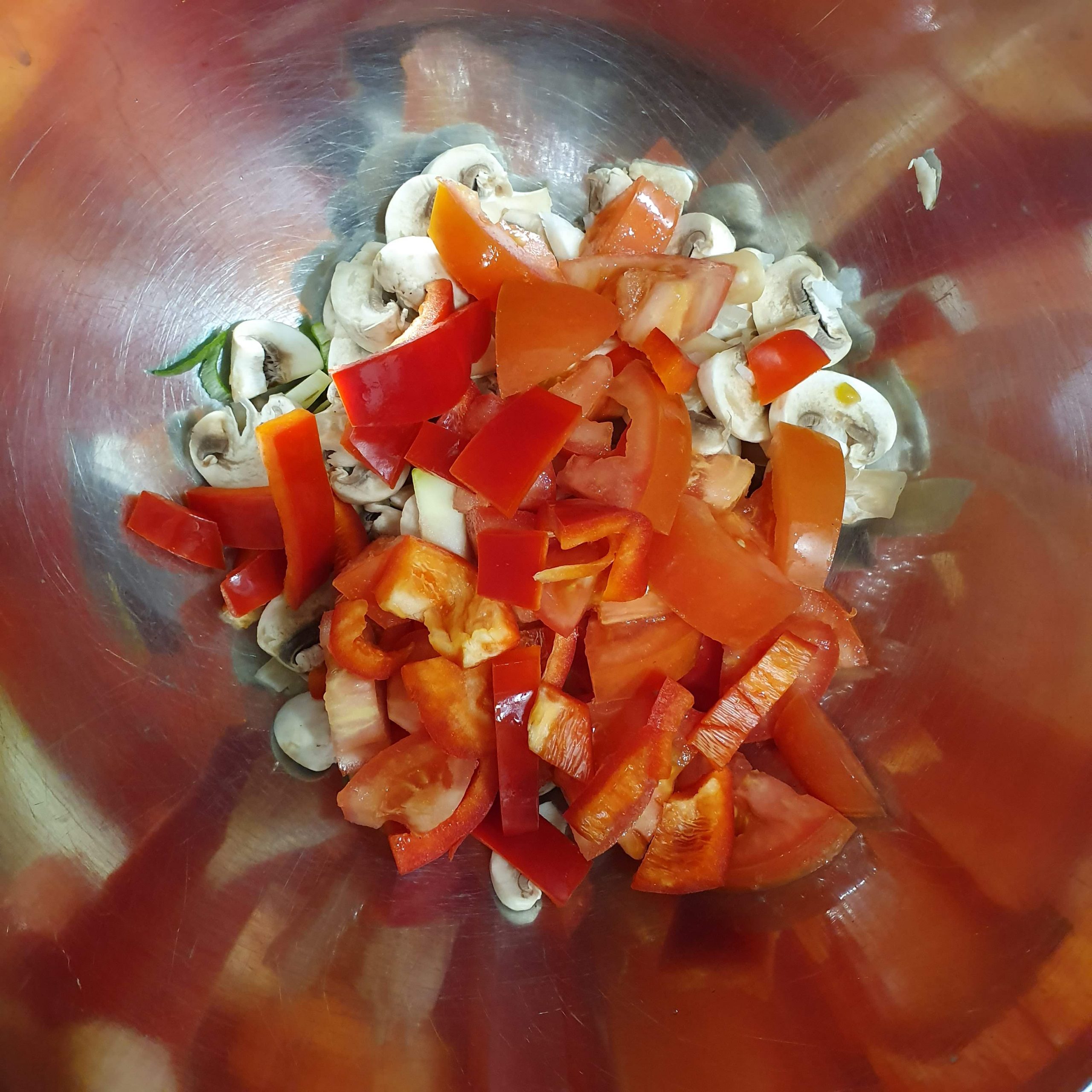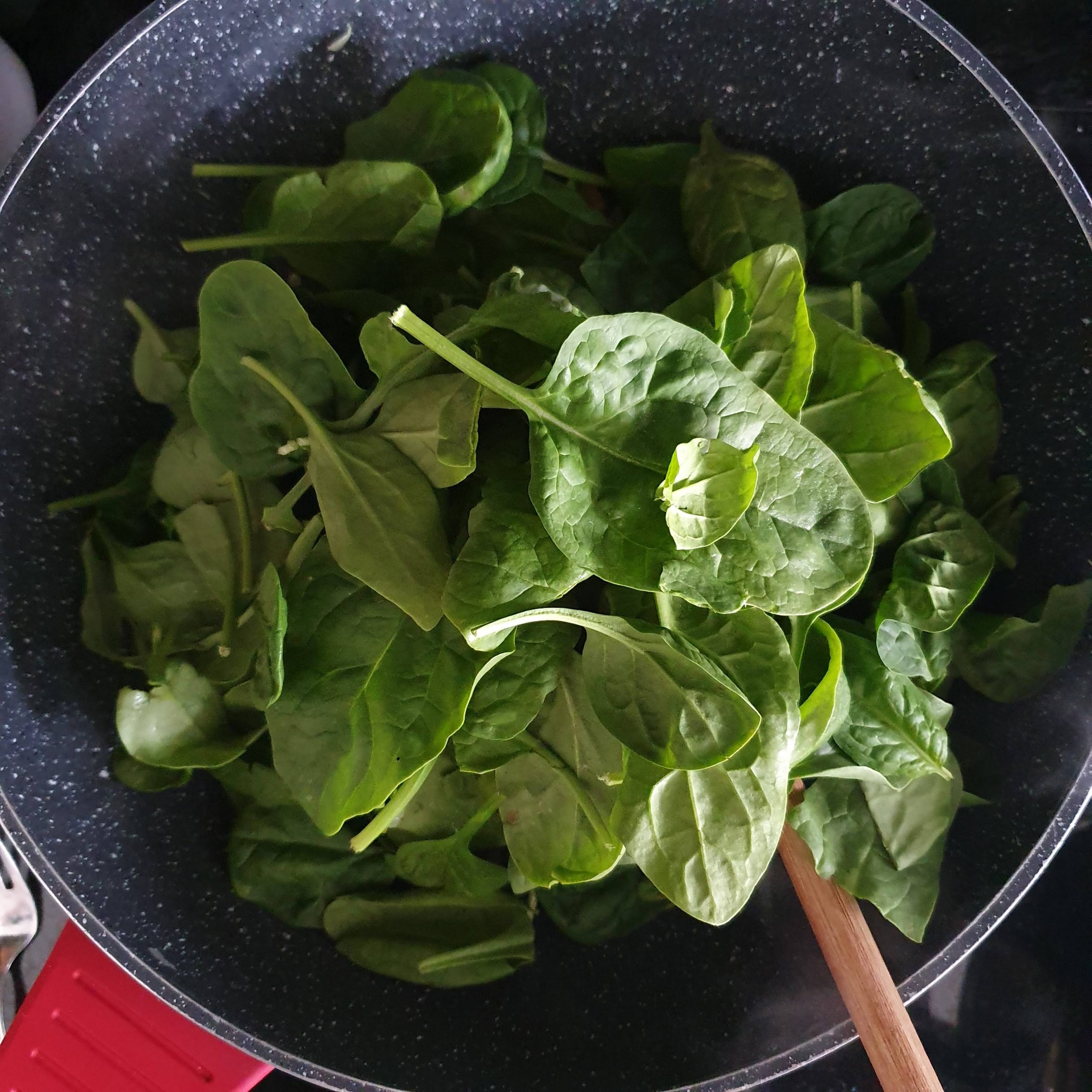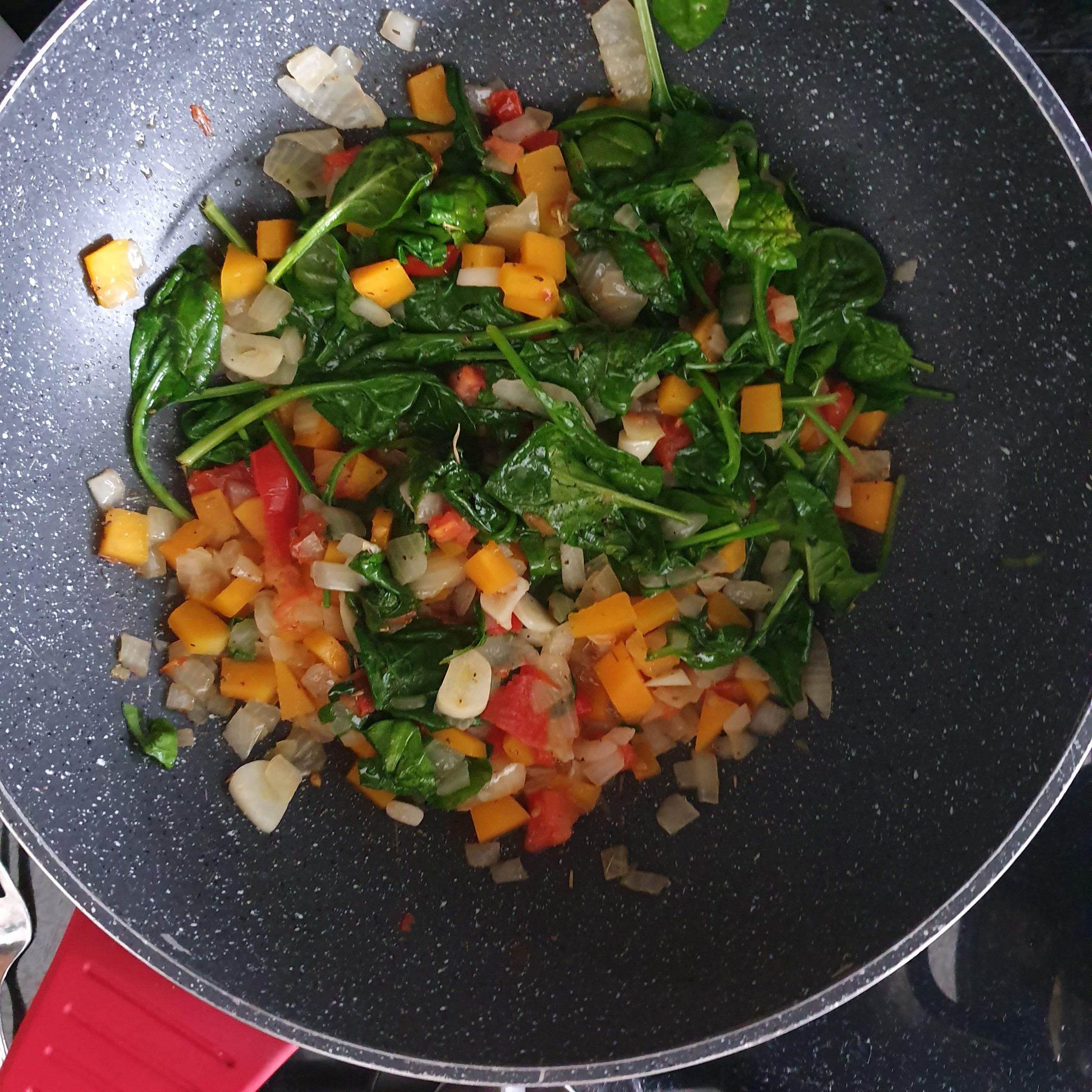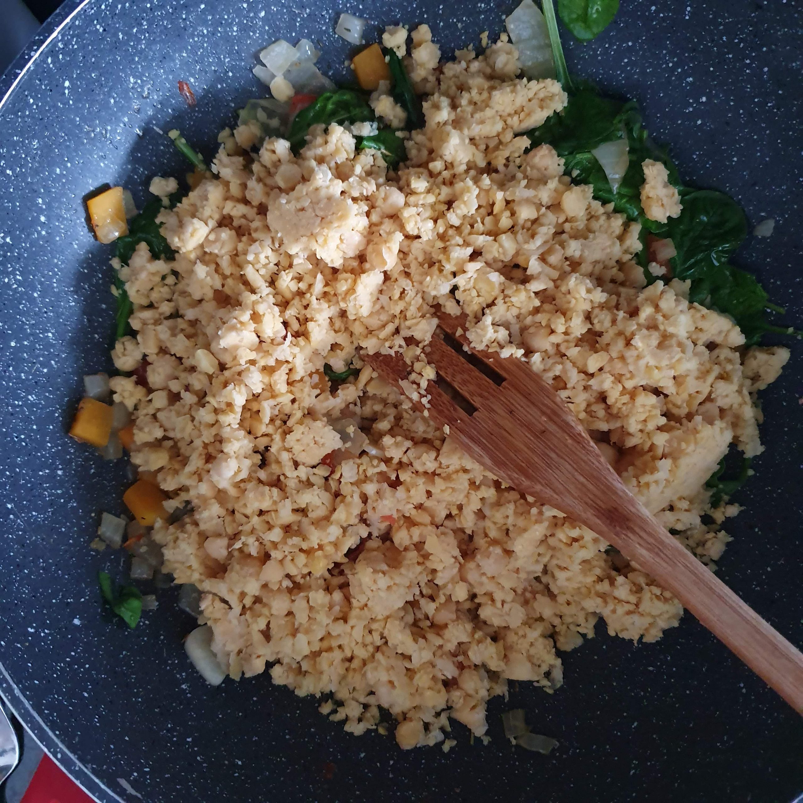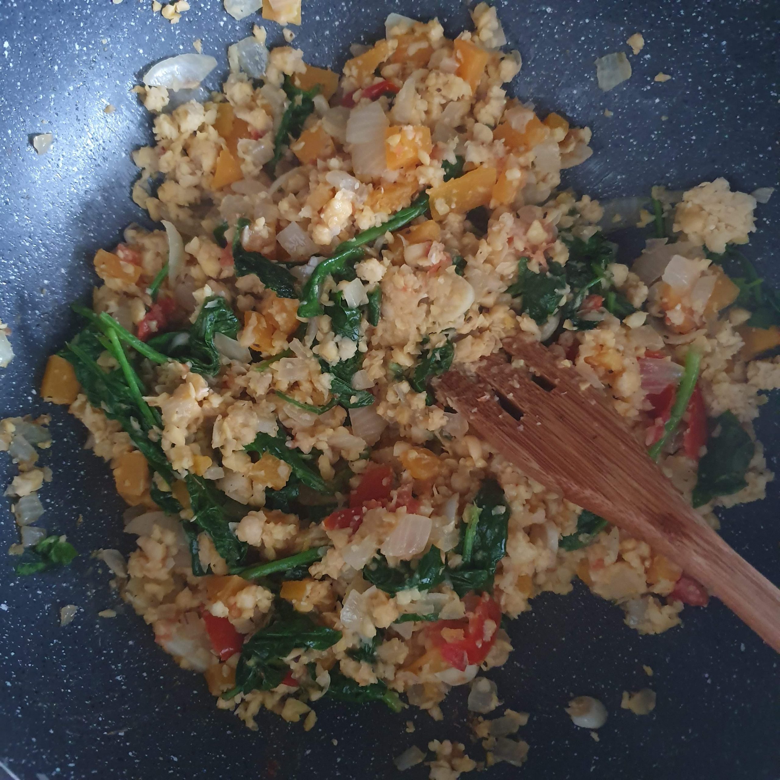 Salteado de grão de bico, espinafres e tomate