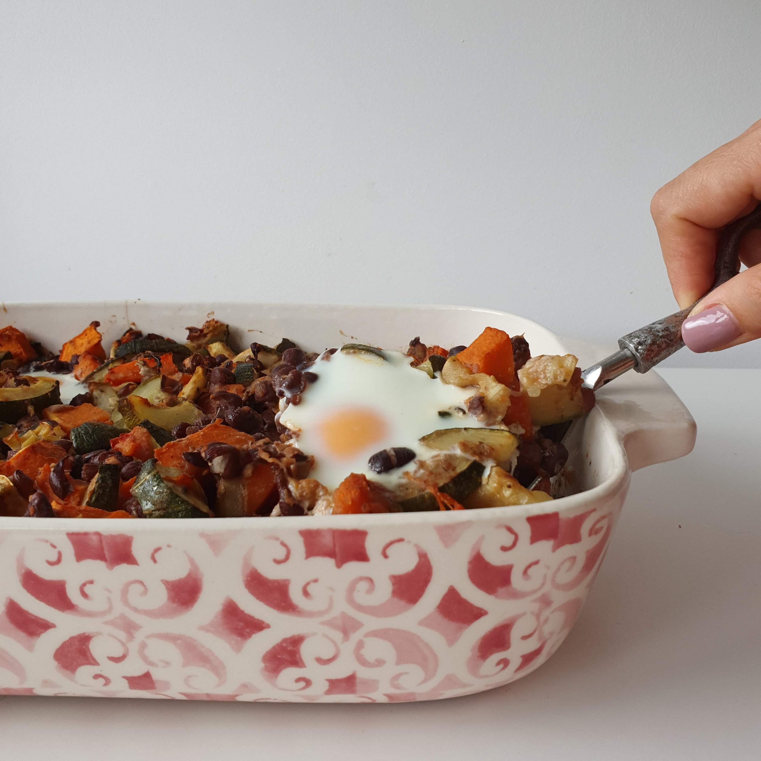 Ovo escalfado com legumes